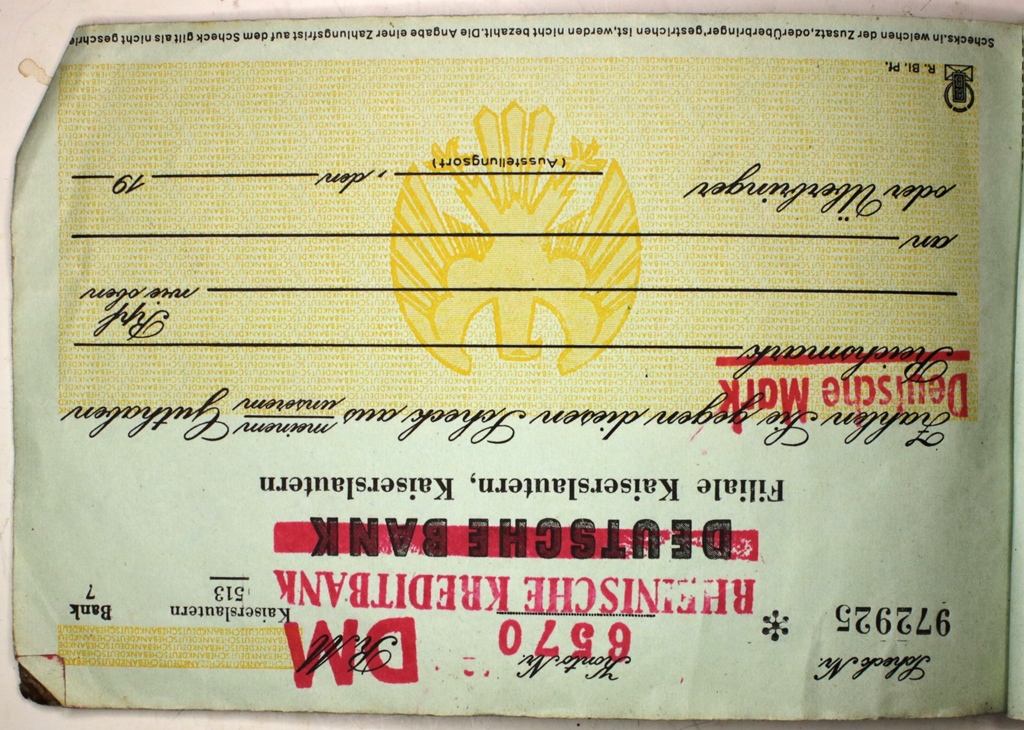 Die ersten Schecks mit Überdruck der Reichsmark mit Deutsche Mark | |