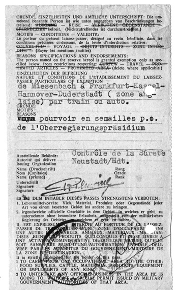 Für die Rückkehr in die Pfalz benötigt man ein Papier der 4 Siegermächte | ||